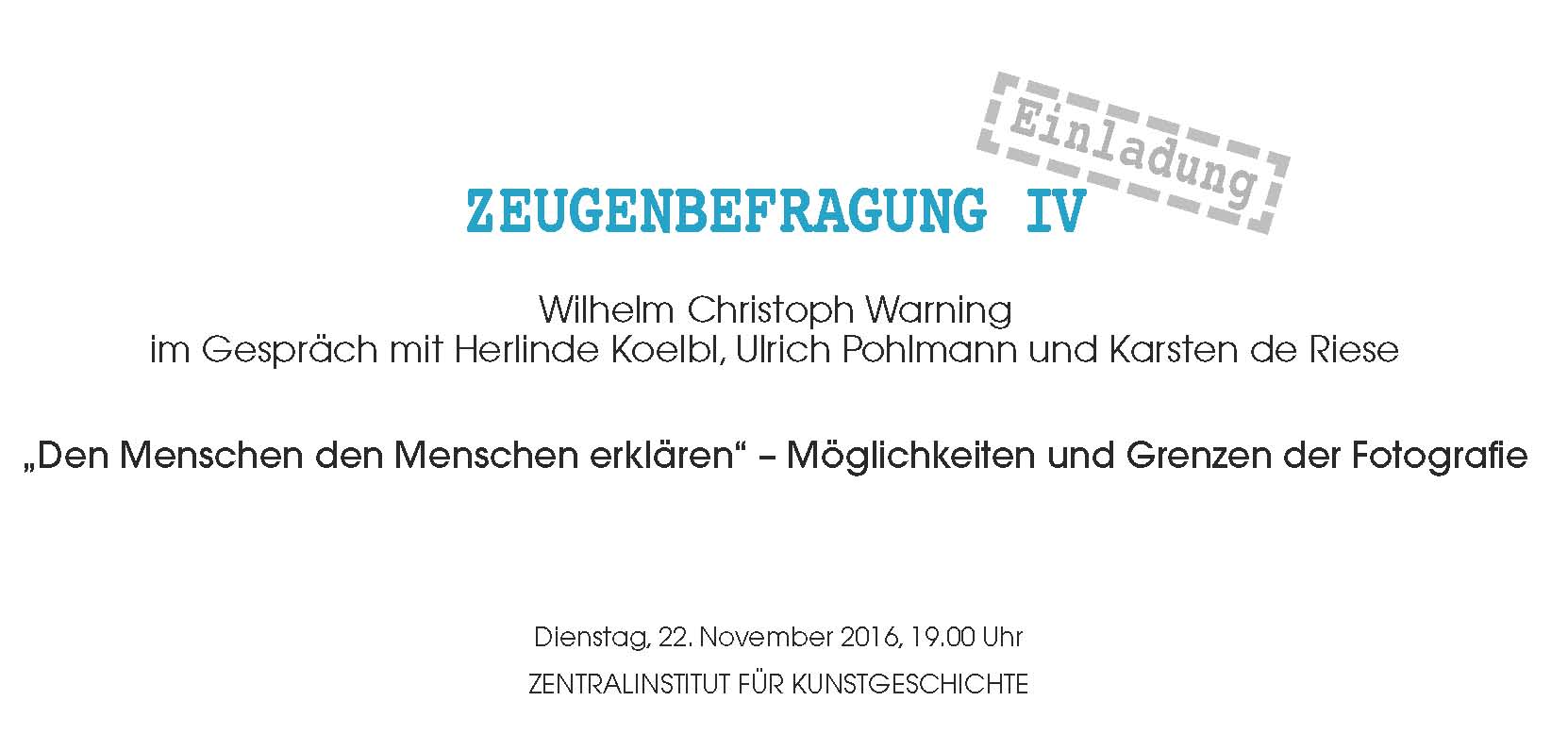 ZEUGENBEFRAGUNG IV: Wilhelm Christoph Warning im Gespräch mit Herlinde Koelbl, Ulrich Pohlmann und Karsten de Riese