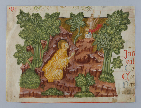 Antiphonarfragment mit der Darstellung der Maria Magdalena zum Fest der Heiligen, Lombardei (Maestro del Libro d'Ore di Modena), 1390-1400. Turin, Museo Civico d'Arte Antica-Palazzo Madama, Inv.-Nr. 397/M.