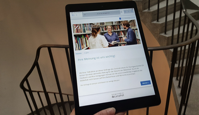 Ihre Meinung ist uns wichtig! // Wir freuen uns, wenn Sie an der Umfrage der Bibliothek des ZI teilnehmen!
